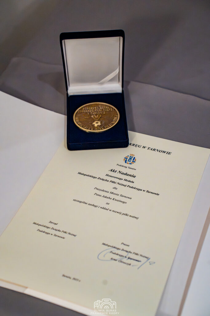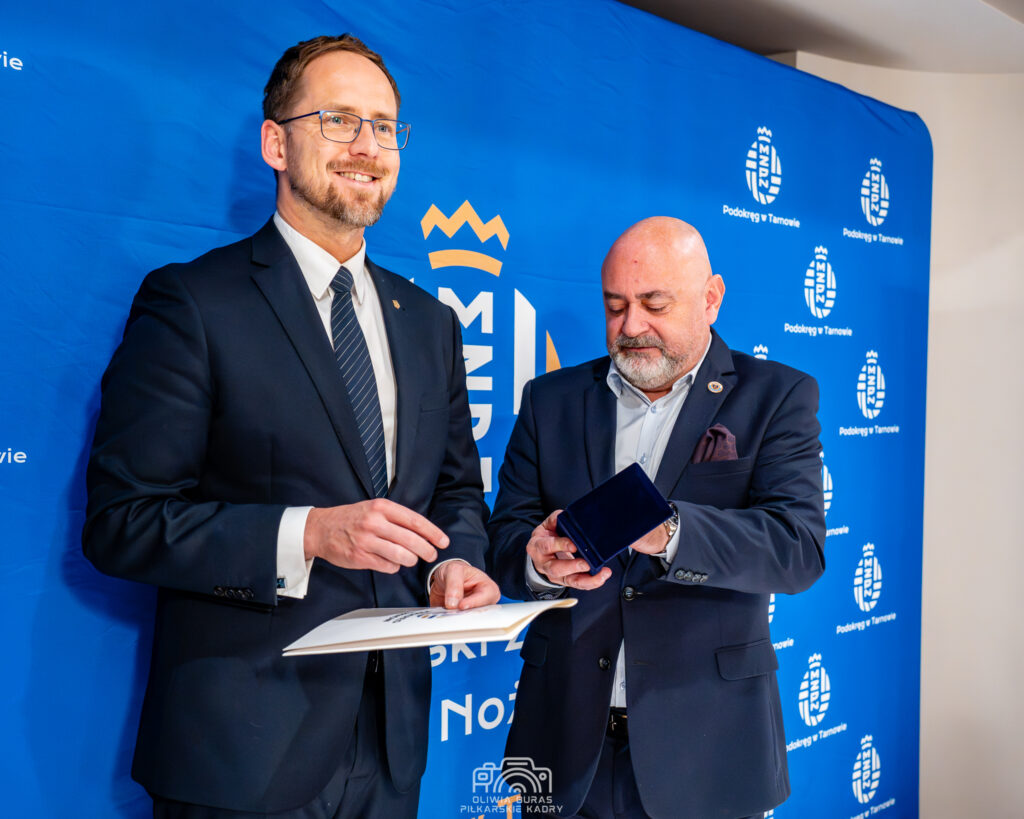 Szczególnym momentem uroczystości było wręczenie przez prezesa MZPN PPN w Tarnowie Artura Główczyka Honorowych Medali Wyróżnienia – jako podziękowanie za nieoceniony wkład w rozwój i promocję piłki nożnej w naszym regionie. Medale trafiły do Prezydenta Miasta Tarnowa Jakuba Kwaśnego oraz Starosty Powiatu Tarnowskiego Jacka Hudymy.